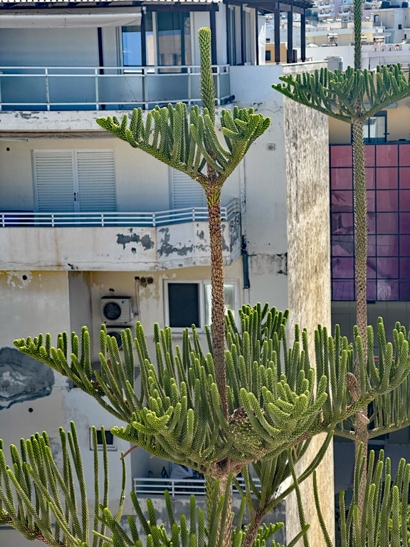 The top of a Araucaria heterophylla, a tree dating back to when there dinosaures on the planet