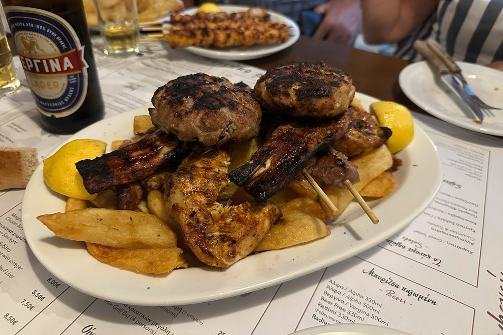 Mixed grill at To Kati Allo. Unfortunately my food was more or less cremated...